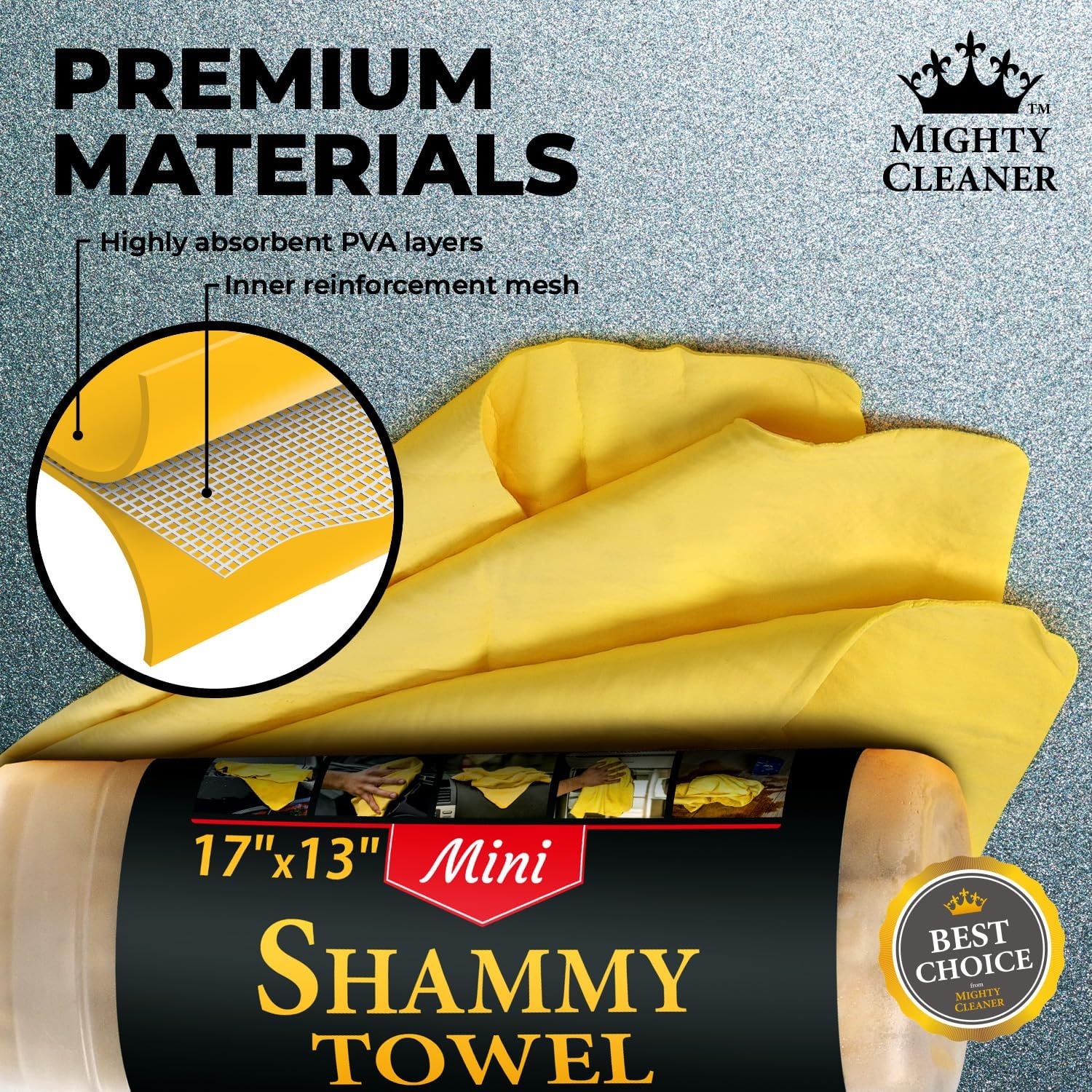 MIGHTY CLEANER will provide you a three-pack kit of cleaning and drying сhamies for cars that are made from high-quality synthetic material which feels as if you’re holding your own personal cloud. The small size (17”x13”) makes it the ideal rag for washing those tight areas of your vehicle. This practical size allows you to reach your vehicle’s smallest nooks and crannies whereas a large rag will not be able to accomplish the task.
