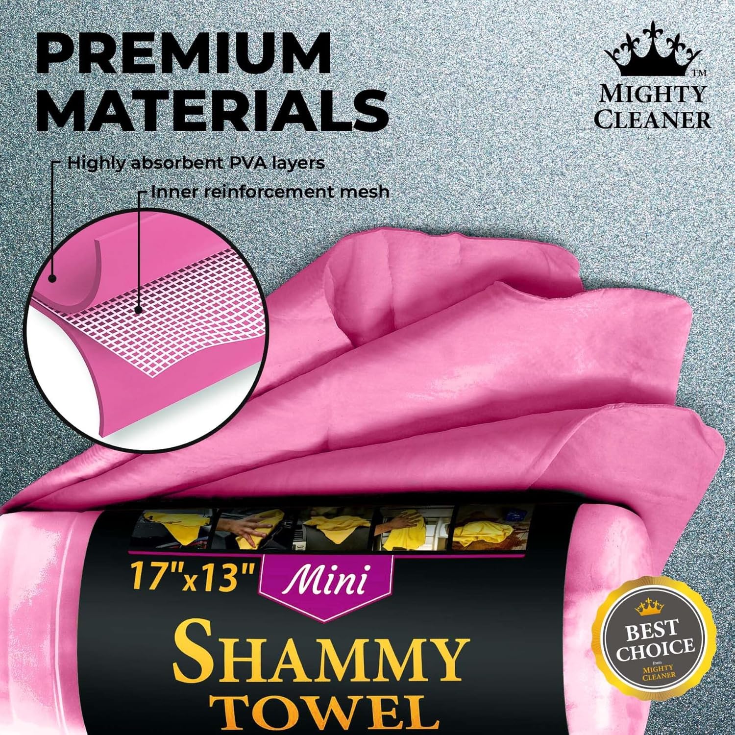 Due to the compact size, our chamois towel for car is the perfect accessory for any driver on the go, whether you are on the run from the cops or going for a drive to visit a relative. Our shammy cloth for car drying fits in your glove or armrest compartment. Since 2005, our customers have relied on our premium car care accessories to keep their vehicles looking great. Our shammy towel for car will take on all jobs, big or small. Why do leading professionals use our chamois cloth for car drying? This compact-sized car shammy for drying is great for washing and drying your vehicle or bike rims and hard-to-reach areas. They fit perfectly in a small storage compartment . Our synthetic chamois absorbs up to 10x its weight while acting as a sponge to dry your car or motorcycle quickly without smearing or streaking. MIGHTY CLEANER will provide you with a three-pack kit of car chamois for drying cars that is made from high-quality synthetic material. The small size (17”x13”) makes it the ideal car drying shammy for those tight areas of your vehicle. This practical size allows you to reach your vehicle’s smallest nooks and crannies, whereas a large rag will not be able to accomplish the task. The multi-purpose nature of our car wash shammy can be used for more than car care. It’s also perfect for soaking up carpet spills, cleaning the kitchen, and washing shower tiles. This makes it better than a paper towel because it doesn’t weaken when it soaks up liquid. Chamois car drying towel is designed to be durable and long-lasting. Your shammies for drying cars kit also comes with an extra towel for you to keep as a helping hand. For best results, store your chamois car cloth slightly damp, in its storage tubes to prevent them from hardening. By taking care of your MIGHTY CLEANER products properly, they will serve you for many years.