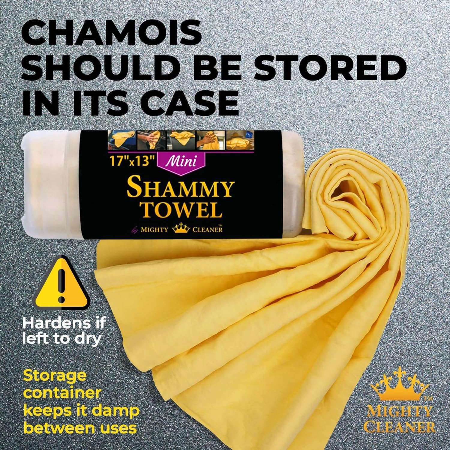 Due to the compact size, our chamois towel for car is the perfect accessory for any driver on the go, whether you are on the run from the cops or going for a drive to visit a relative. Our shammy cloth for car drying fits in your glove or armrest compartment. Since 2005, our customers have relied on our premium car care accessories to keep their vehicles looking great. Our shammy towel for car will take on all jobs, big or small. Why do leading professionals use our chamois cloth for car drying? This compact-sized car shammy for drying is great for washing and drying your vehicle or bike rims and hard-to-reach areas. They fit perfectly in a small storage compartment . Our synthetic chamois absorbs up to 10x its weight while acting as a sponge to dry your car or motorcycle quickly without smearing or streaking. MIGHTY CLEANER will provide you with a three-pack kit of car chamois for drying cars that is made from high-quality synthetic material. The small size (17”x13”) makes it the ideal car drying shammy for those tight areas of your vehicle. This practical size allows you to reach your vehicle’s smallest nooks and crannies, whereas a large rag will not be able to accomplish the task. The multi-purpose nature of our car wash shammy can be used for more than car care. It’s also perfect for soaking up carpet spills, cleaning the kitchen, and washing shower tiles. This makes it better than a paper towel because it doesn’t weaken when it soaks up liquid. Chamois car drying towel is designed to be durable and long-lasting. Your shammies for drying cars kit also comes with an extra towel for you to keep as a helping hand. For best results, store your chamois car cloth slightly damp, in its storage tubes to prevent them from hardening. By taking care of your MIGHTY CLEANER products properly, they will serve you for many years.