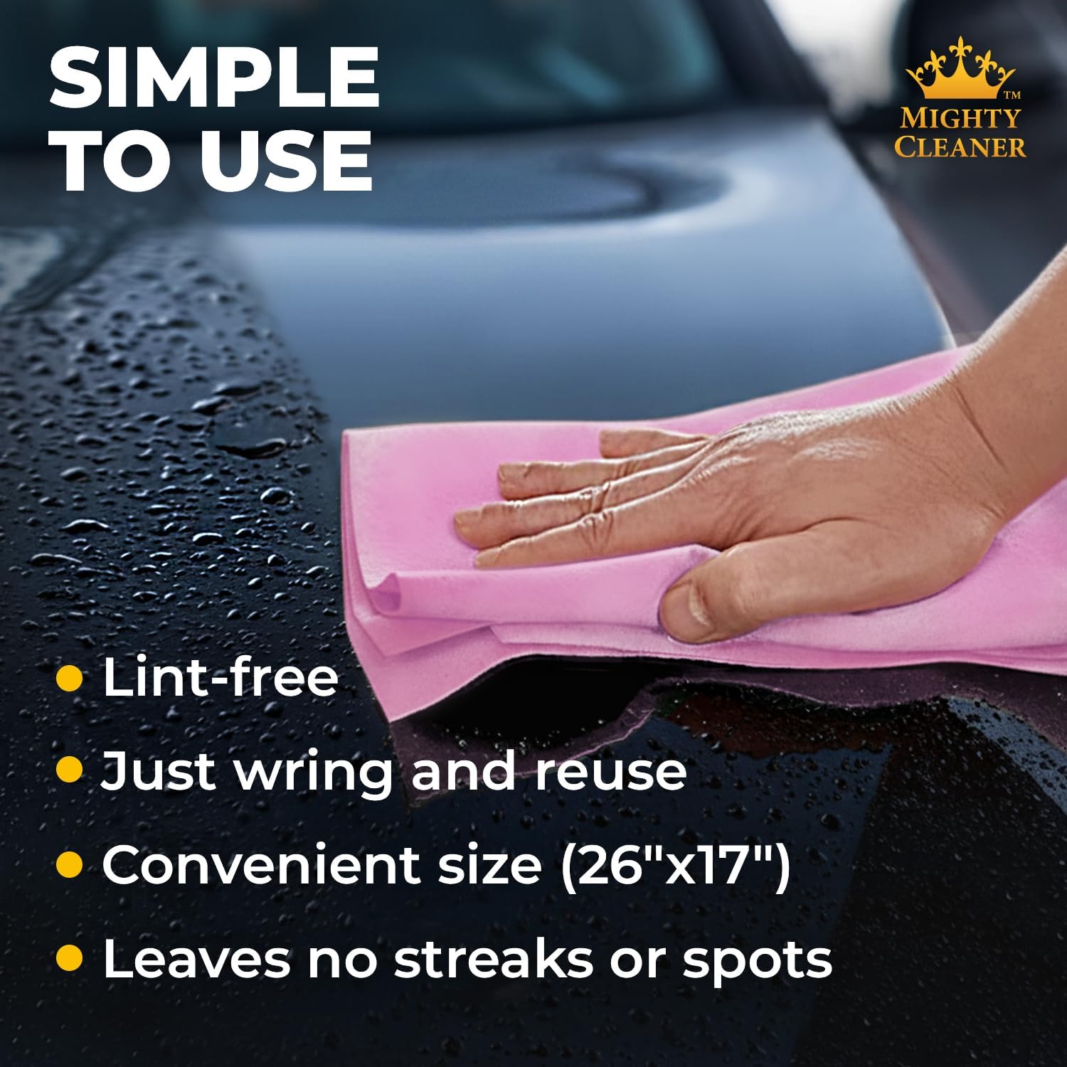 Due to the compact size, our chamois towel for car is the perfect accessory for any driver on the go, whether you are on the run from the cops or going for a drive to visit a relative. Our shammy cloth for car drying fits in your glove or armrest compartment. Since 2005, our customers have relied on our premium car care accessories to keep their vehicles looking great. Our shammy towel for car will take on all jobs, big or small. Why do leading professionals use our chamois cloth for car drying? This compact-sized car shammy for drying is great for washing and drying your vehicle or bike rims and hard-to-reach areas. They fit perfectly in a small storage compartment . Our synthetic chamois absorbs up to 10x its weight while acting as a sponge to dry your car or motorcycle quickly without smearing or streaking. MIGHTY CLEANER will provide you with a three-pack kit of car chamois for drying cars that is made from high-quality synthetic material. The small size (17”x13”) makes it the ideal car drying shammy for those tight areas of your vehicle. This practical size allows you to reach your vehicle’s smallest nooks and crannies, whereas a large rag will not be able to accomplish the task. The multi-purpose nature of our car wash shammy can be used for more than car care. It’s also perfect for soaking up carpet spills, cleaning the kitchen, and washing shower tiles. This makes it better than a paper towel because it doesn’t weaken when it soaks up liquid. Chamois car drying towel is designed to be durable and long-lasting. Your shammies for drying cars kit also comes with an extra towel for you to keep as a helping hand. For best results, store your chamois car cloth slightly damp, in its storage tubes to prevent them from hardening. By taking care of your MIGHTY CLEANER products properly, they will serve you for many years.